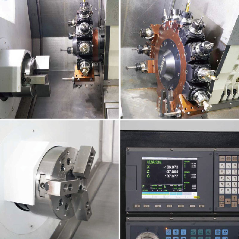 Ang tool ng makina ay nagpatibay ng isang 12/15-istasyon na turret at nilagyan ng isang BMT40/ER25 power turret. Ang maximum na bilis ng ulo ng kuryente ay umabot sa 4000 rpm at may metalikang kuwintas na 7.7N · m, na maaaring matugunan ang mga pangangailangan sa pagproseso ng mga kumplikadong bahagi. Ang application ng power turret ay nagbibigay -daan sa tool ng makina upang makumpleto ang maraming mga proseso tulad ng paggiling, pagbabarena, at pag -tap sa isang clamping, lubos na pagpapabuti ng kahusayan sa pagproseso at pagbabawas ng mga error, at pagpapabuti ng pagkakapare -pareho ng produkto.